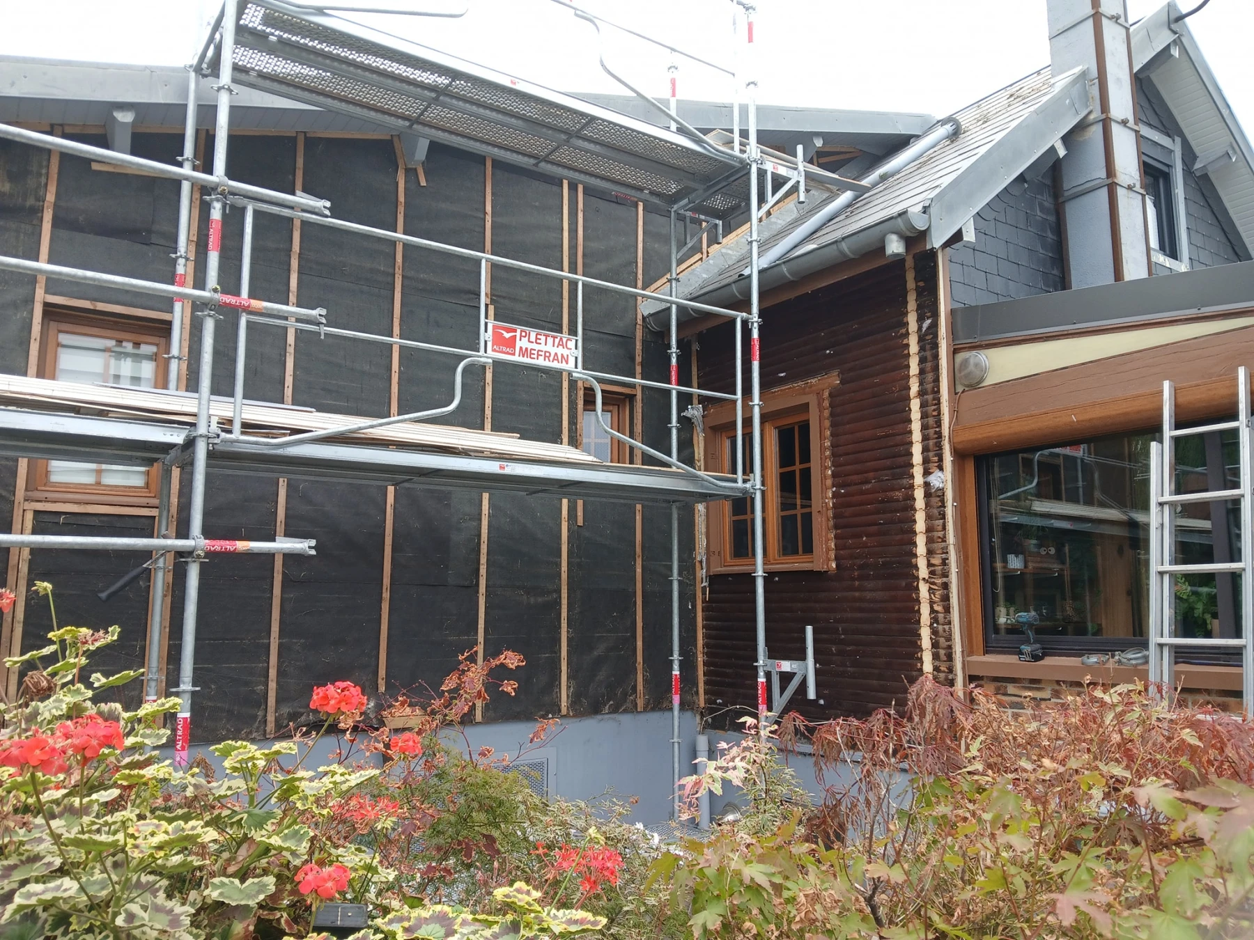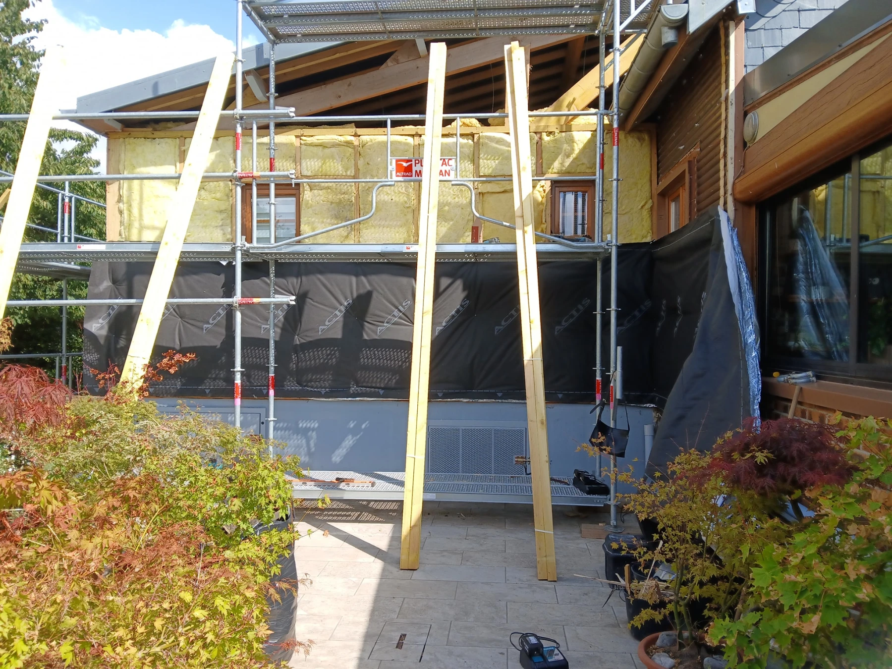 Pose d'une isolation extérieure dans le cadre de cette rénovation, accompagnée du réalignement des façades.